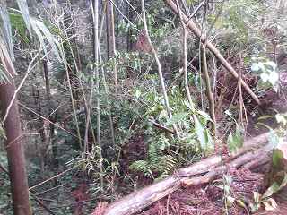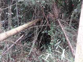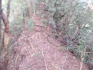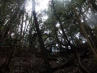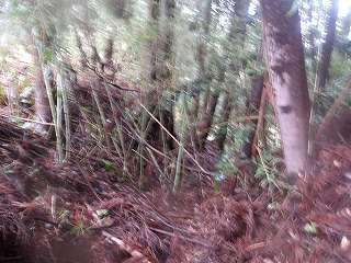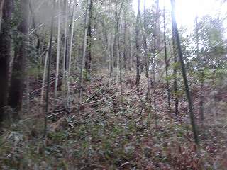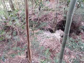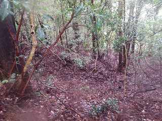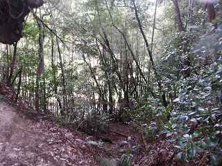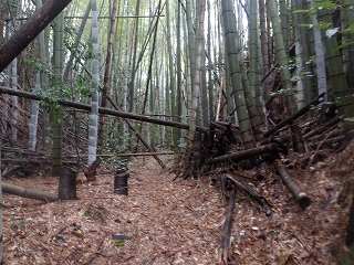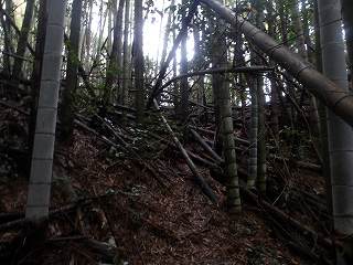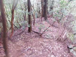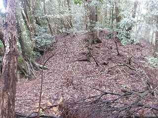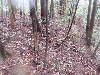 その背後の山稜はほとんど自然地形のようだが、かなり奥の方まで堀切を射れた箇所が続いているらしい。