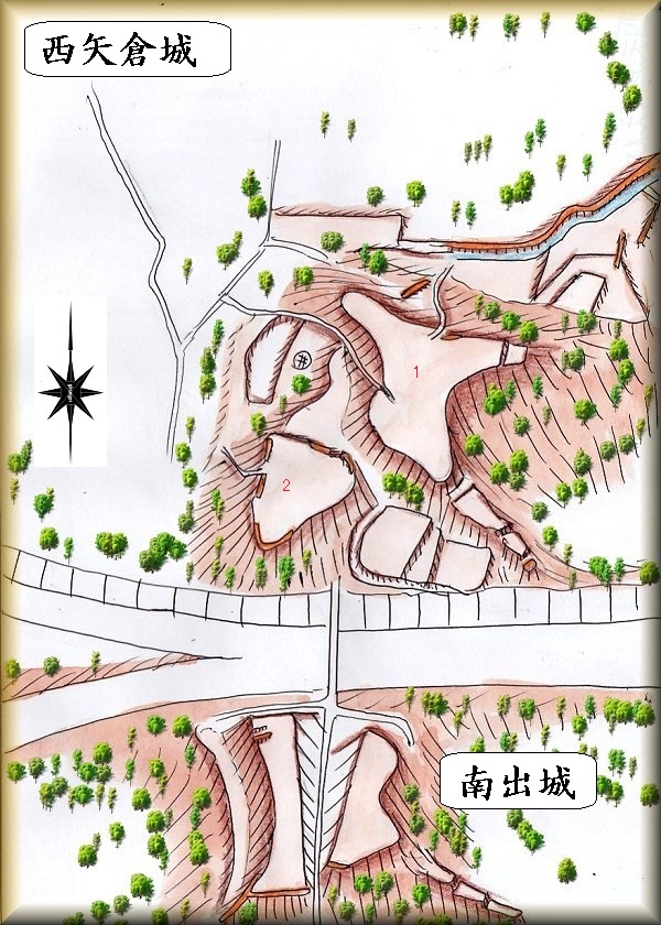 この城は矢倉城の西側にある。西城という地名が、そのことを示している。ただし、矢倉城よりは、こちらの方が規模も大きく、まとまりのよい城郭となっている。。