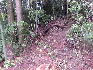 | 1郭東側の崖状地形。 | 1郭城塁。 |