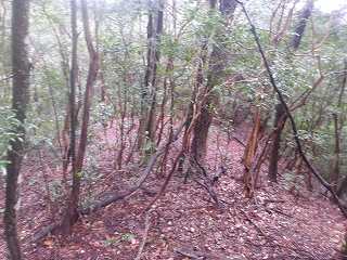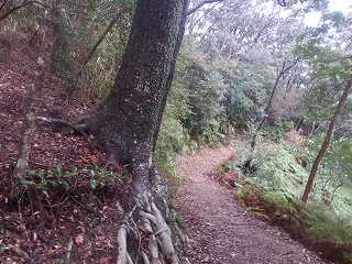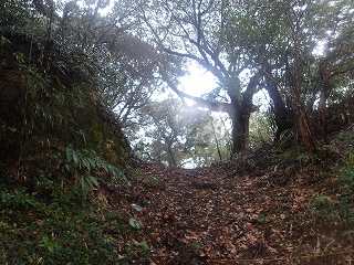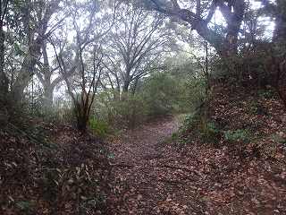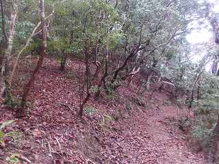 その先は登りの道となっているが、この辺りはほとんど自然地形のようである。ただ、側面部には腰曲輪状の地形も見られる。