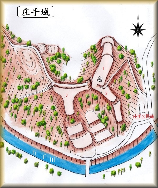 庄手城の城主等、歴史については未詳であるが、地元豪族の居城だったであろうか。