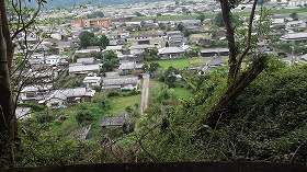 高城は小丸川と切原川に囲まれた比高30mほどの台地先端部分に築かれていた。地図などにもだいたい掲載されているので、場所に迷うことはないだろう。高速だと、南九州自動車道高鍋ICから3kmほどの距離である。