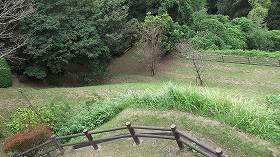 | 第3空堀。下から見えたやつである。 | 主郭部に入って第1空堀。加工されてはいるが、大規模なのがよく分かる。 |