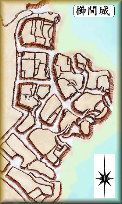 櫛間城は、福島川に臨む比高15mほどの台地先端部を利用して築かれている。現在は、工業団地になってしまっており、遺構の多くは失われてしまっているということで、『16世紀末全国城郭縄張図集成』に掲載されている図面を基にして復元図を作成してみた。