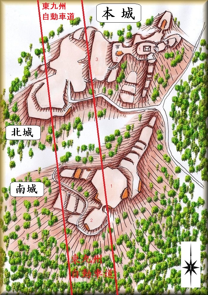 現在、これらの城内を削り通るようにして東九州自動車道が通っている。これによって、城域の西側半分は消滅してしまったようである。