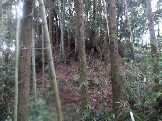 2郭の東側は尾根続きになっており、その上に1郭がある。といっても物見台程度の狭い区画でしかない。