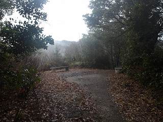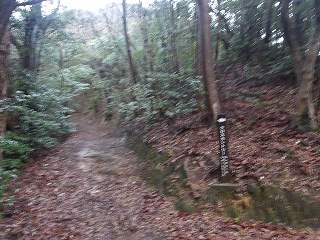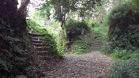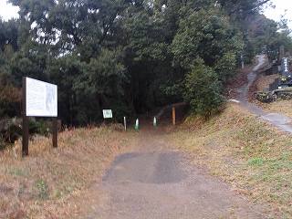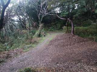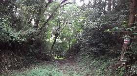 | 城内への入口。案内板がある。 | 城内には林道が通っている。 |