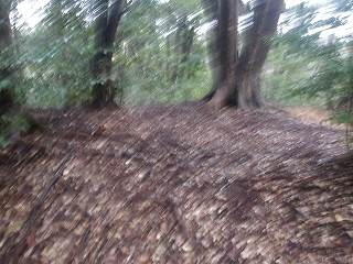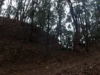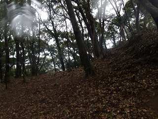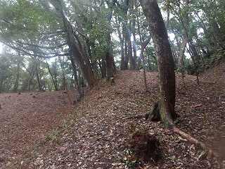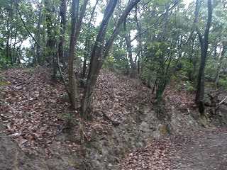 2郭群も郭の中央部分が土壇状になっているのだが、こちらは1郭とは違ってちゃんと削平された空間ではなく、天然の地形がそのまま残されていった具合である。削平せず段々の地形にしているのには何か意味があるのであろうか。