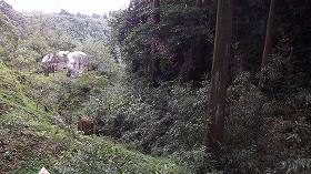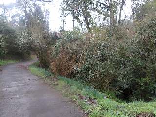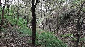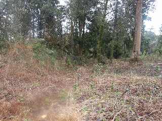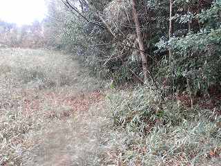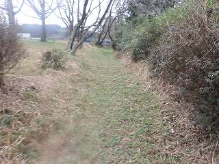 「やはり畜産施設の辺りからアクセスするしかない」ってことで、台地基部の方まで戻ってきた。畜産施設は「立ち入り禁止」となっている所が多いから、あまり近づきたくないのである。しかし、そうも言っていられない。台地基部から畜産施設の脇を西側に進んでいく。