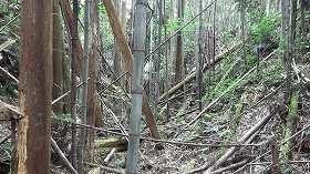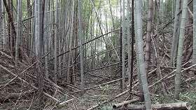 ところが、ここから先は猛烈な倒竹地獄なのであった。これではまったく自由が利かない。目視も利かない。そして夏場ということもあってヤブ蚊も多い。いいことが1つもない。だいいち宮崎に来てまでどうしてヤブ漕ぎをしなければならないのか。公園なのにヤブ漕ぎをするなんてナンセンスな話だ。