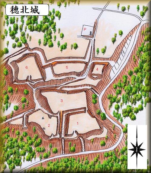 | 穂北城の城主は、伊東氏に属した長倉洞雲斎で、やはり伊東48城の1つであった。 天正5年(1577)、伊東氏が島津氏に敗れて日向を脱出する際、豊後街道はふさがれてしまったため、穂北城を訪れ、洞雲斎に助けられて、米良を経由して豊後に落ちていったという。 その後、穂北城は島津氏に接収された。島津時代の城代は平田宗張であった。 |