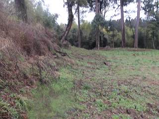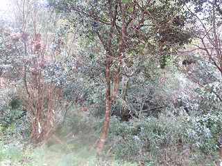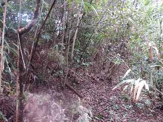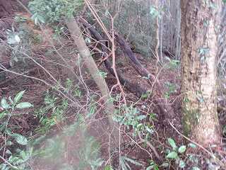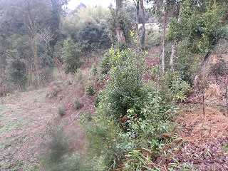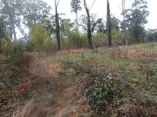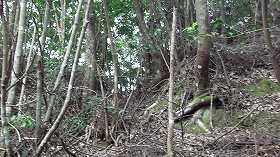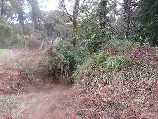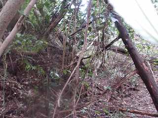 | 5郭の土塁。土塁もしっかりしているのだが、ヤブがひどくて、何が何やら・・・・。 | |
