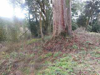 西側は台地続きとなっているため堀切を掘っているが、深さは4mほどと、それほど大規模なものではない。