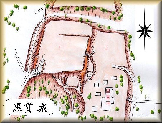 黒貫寺の背後の台地が黒貫城の跡であるので、黒貫寺を目指して行くとよい。