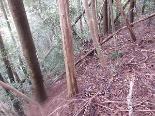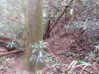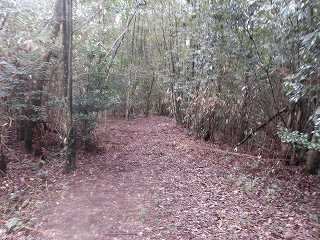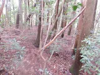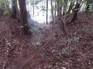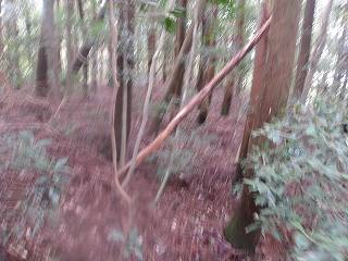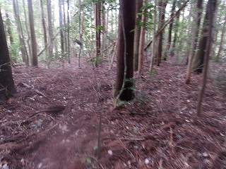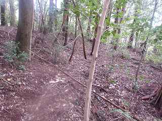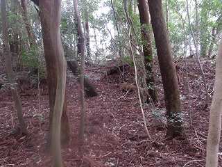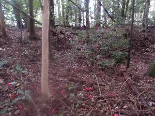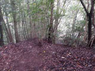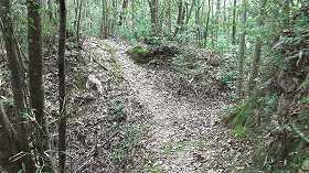 そこから先は細尾根が数十mほど続いているのだが、やがて道が側面部に回り込み、左手の尾根上部分が高くなっている箇所にさしかかる。ここに堀5がある。さらにそれを回り込んだところに堀6があり、ここで城域は終わる。