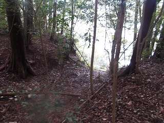 | 3郭と6郭との間の堀切。この部分は最も深く、10m以上ある。最大の見どころだ。 | 3郭と2郭との間の堀切。 |