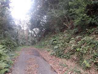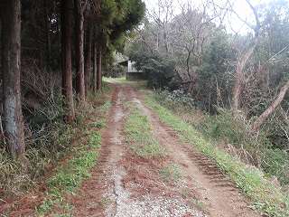 下の城のすぐ脇を台地の上の畑に登って行く林道が通っている。この林道は普通車でも十分に運転できるような道なのであるが、城の周辺で車を停められそうなところがまったくない。素直に林道の入口付近に車を停めて歩いて行くのが正解である。
