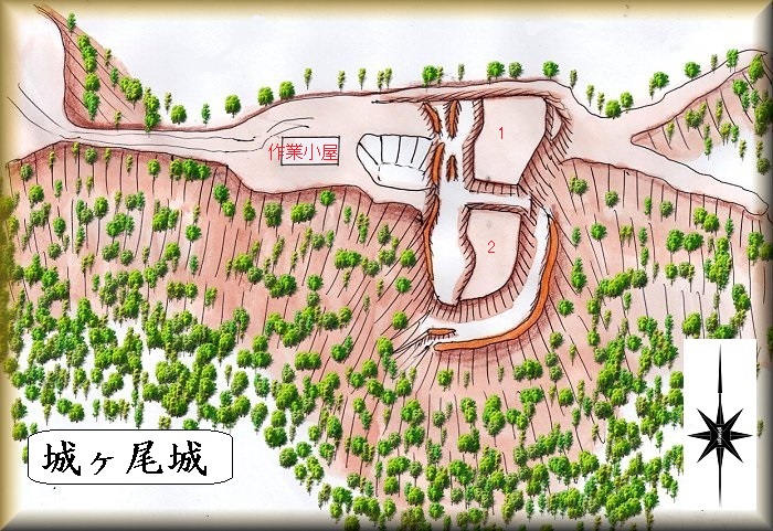 これだけである。城ヶ尾城は、それほど鋭い構造物の見られない小規模な城というべきものであった。天険に頼った小規模な砦、といった性質のものであったろう。