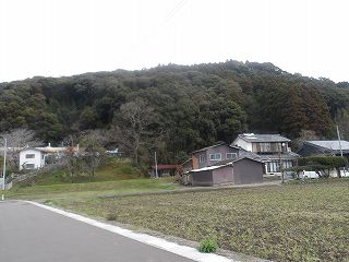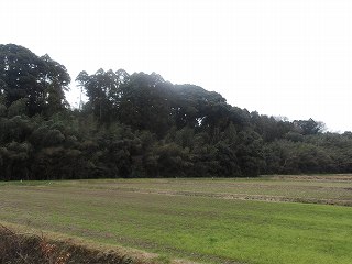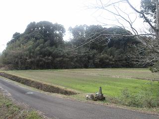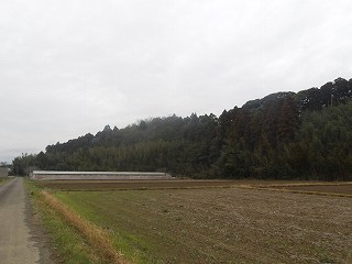 上日置城は、上日置の集落から北東に突き出した台地先端部分を利用して築かれている。現在は、台地基部部分を削るようにして県道305号線が通っている。
