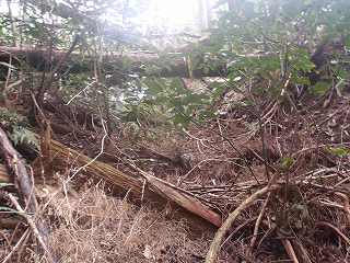 比高50mほどであるから、これなら下から直登した方が早い。そう思って下から取り付こうとしたのだが、ヤブがひどすぎてそれどころではない。