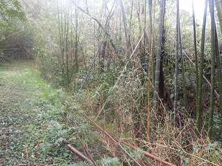 南側の山麓は運送会社の敷地となっていて、あまりうろうろするのもはばかられる。それほど高くない山稜であるし、無理に直登すれば、すぐに城内に到達できるかとも思ったのだが、いろいろ考えて直登はやめておいた。