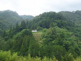 熊谷家から、山道を進んで行く。その途中の左手にはかつて耕作地であったと思われる段々があるようだが、耕作が放棄されてしまった現在では、すっかり荒れてしまっている。