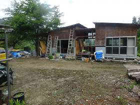 そこで橋を渡って右手の山道を比高100mほど登って行くと、熊谷家に到達した。そこで熊谷さんにお願いして城内を見学させてもらうことにした。熊谷家は2000年代に火災に遭ってしまったとのことで、現在は仮住まいのようなお宅になっている。