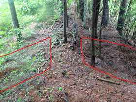| 北側下の二重堀切の1重目。 | その先にある2重目。 |