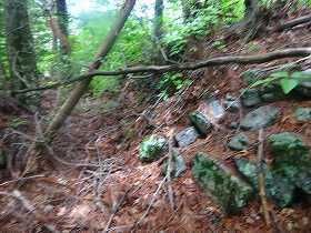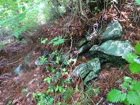 | その先の尾根手前にある堀切。 | 1郭南の堀切には石積みが見られる。 |