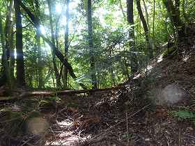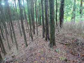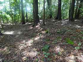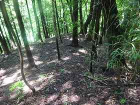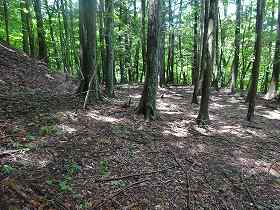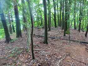 ところがその先の斜面も切岸加工されておらず、わりと緩やかに1郭に向かって行く。予想よりも加工度の低い山城であるようである。