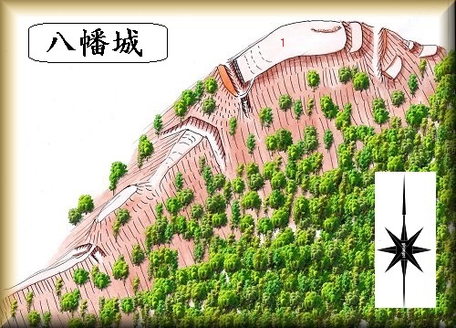 八幡城は、関氏が矢草城の防衛のために構築した出城であったと言われているが、かなり山中に引っ込んだところにあり、集落からも隔絶している。あまり戦略的に意味のある山城であるとは思われないのであるが、緊急時の避難所として意識されていた城郭であったのだろうか。