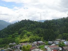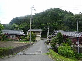 矢草城は、阿南町役場の西方にそびえている比高110mほどの山稜に築かれているのだが、場所がちょっと分かりにくい。城址のすぐ下には熊谷家があり、そこに断って城址に行こうと思ったのだが、このお宅はすでに廃屋となっており、そこまでの道も車が通れるようなものではなくなっていた。車はどこか途中の路肩の脇にでも停めさせてもらうしかない。