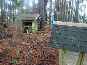 | 神社背後にある関春仲、盛永、その妻3人の墓。 | その背後の大堀切の先にある権現堂。 |
