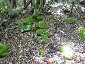 | 塁上の石積み。 | 4郭に面する部分の石積み。けっこう大きな石が積まれている。 |