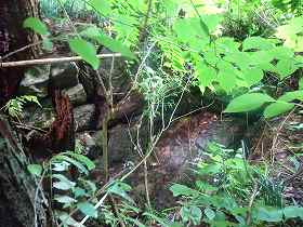 | 再び2郭手前の大堀切の所に戻ってきた。 | 熊谷家の入り口脇にある石積みの井戸。現在も水が湛えられている。城の井戸として使用されていたという。 |