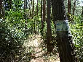 ところで、大城から西側にかけて山道が付けられていた。これがどこまで続いているのか確認していないのだが、地形図を見ると西側の尾根続きのところまで林道が通っているのが分かる。この林道が車で乗り入れられるものなのかどうかも確認できていない。もしかしたら林道の途中から大城までの遊歩道の入口が付けられているのかもしれない。