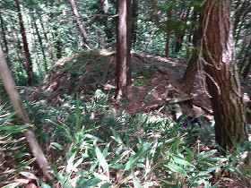 | 尾根を降って行った所にある小規模な堀切。 | 再び大城へ戻ってきた。大城から西方にかけて道が付けられていた。 |