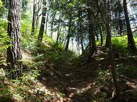 そこからはひたすらに尾根を登って行く。途中、道が切通し状になっている個所もあるが、城と関連するものかどうかは不明である。