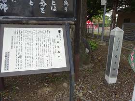 | 参道入口にある標柱と山門の案内板。 | 山門。実に立派なものだ。 |