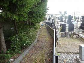 | 墓地の南側にある標柱。 | 東側の堀跡。 |