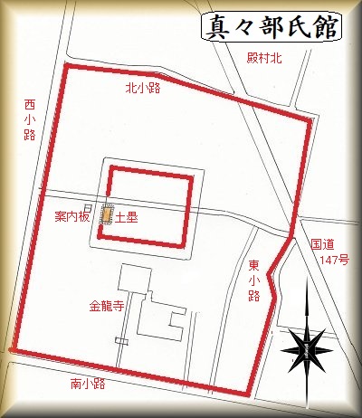 金龍寺の背後の50m四方ほどの部分が館跡であったという。この内部に真々部氏の屋敷が建てられており、南側に隣接している金龍寺は、真々部氏の菩提寺として建立されたものであったとされる。