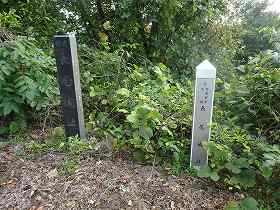 なんとか城址に到達してみると、そこには城址碑とj標柱とが設置されていた。しかし、遺構らしきものはすっかり失われてしまっているように見える。もしかしたら、1郭南西側の堀だけは、かろうじて痕跡が残っているかもしれないが、よく分からなかった。