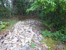 この西側の通路の所には、大手道と刻まれた小さな石碑が建てられていた。確かにこの方向が砦の入口となるのであろうが、大手などと呼ぶほどたいそうなものではなかったように思われる。