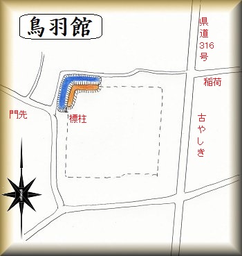 県道316号線の西側、鳥羽設計事務所のあるところが鳥羽館の跡であり、googlemapにも表示されている。