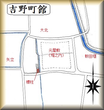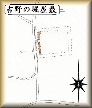 安曇野市豊科3403番地のお宅が吉野の堀屋敷の跡であり、googlemapにも掲載されている。場所が分かりにくいのだが、館跡の西側の道を進んで行けば、道路のすぐ東側に堀と土塁があるのを発見できるので、そこが館跡であることはすぐに分かる。