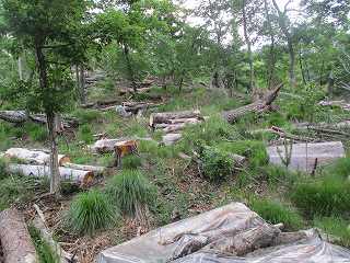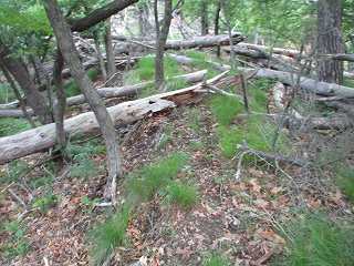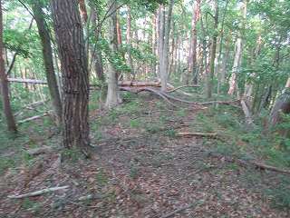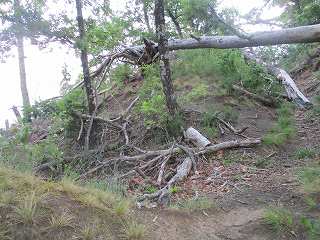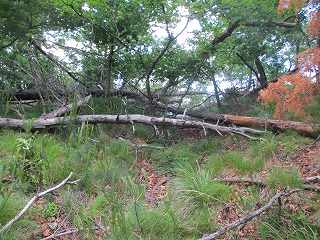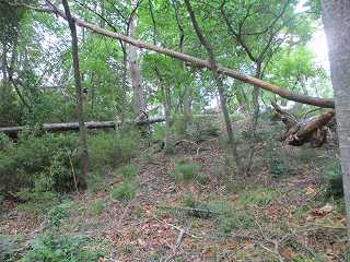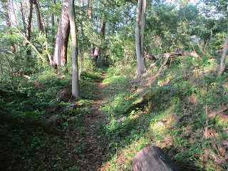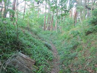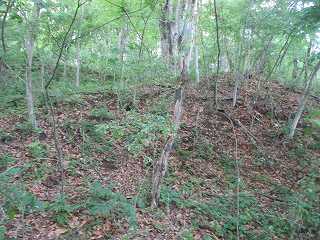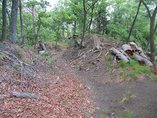 | 5郭の土塁。 | 5郭内部。倒木だらけで、とても歩きにくい。 |