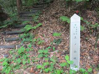 県道57号線から豊科カントリークラブに向かう山道を進んで行くと、道が南側でヘアピンカーブを描いている地点がある。ここが上の山城の登山口である。登山口には安曇野市ではおなじみの城址標柱が立てられており、階段もあるので、そこが登城口であることはすぐに分かる。安曇野市ではたいがいの城に標柱を建ててくれているので、とてもありがたい。