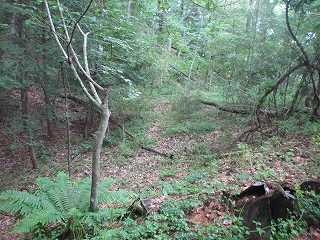 | 北西側の尾根続き。浅い窪みがあるが、堀切というほどのものでもない。 | |