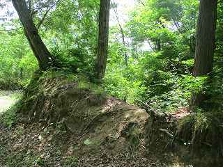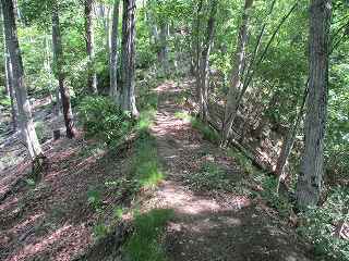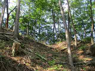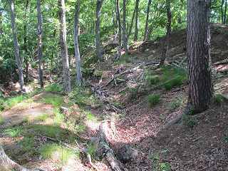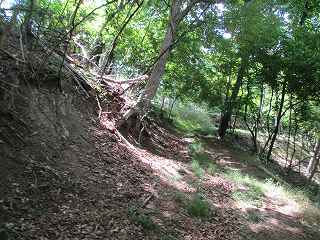 | その脇にある本来の堀切。 | 1郭の側面部。 |