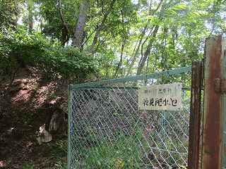 城のある尾根には花見配水池があり、そこまで車道が付けられている。その入口はこの場所である。しかし、車は山麓のこの辺りのどこかに余白を見つけて停めて、ここから歩いて登るのが無難である。